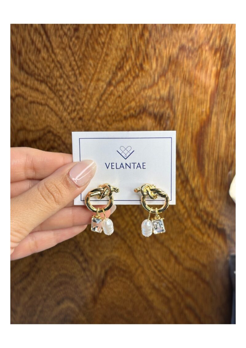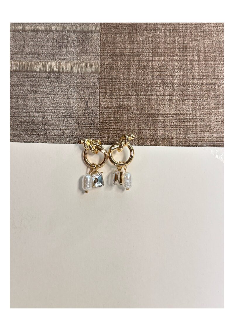 Golden Glow Rhinestone & Pearl Studs – Elegance in Every Detail