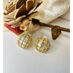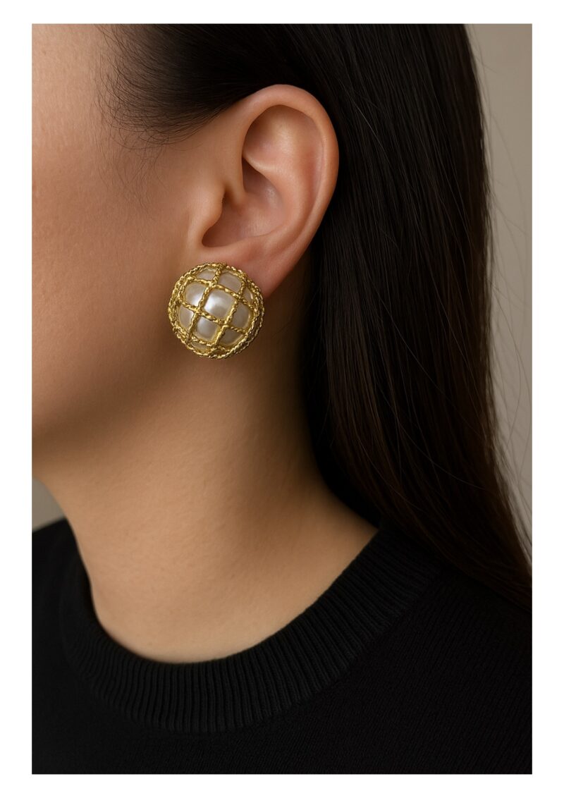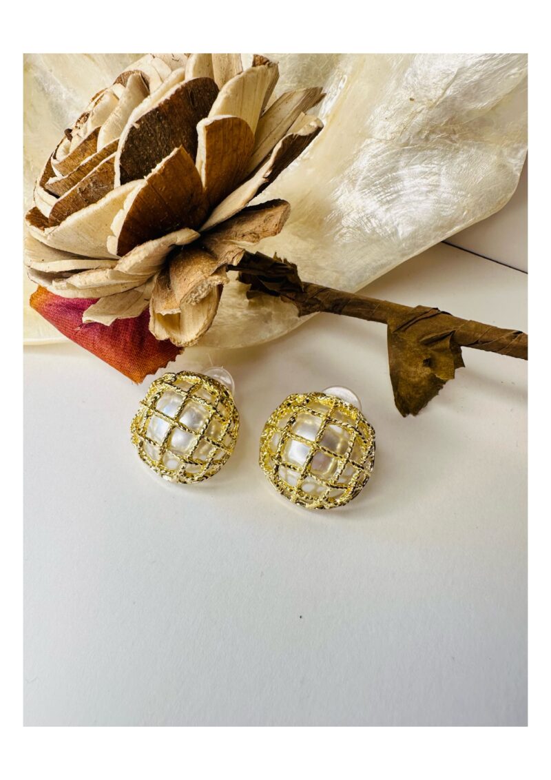 Lustrous Pearl Net Studs – Classic Elegance with a Golden Twist