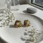 Delicate, multi-layered flower studs with elegant pearl accents, built on a foundation of pure stainless steel and 18k gold coated. These are completely waterproof, sweat proof, and guaranteed anti tarnish. This refined, skin safe design ensures you look confidence for every occasion, from office looks to family brunch.
