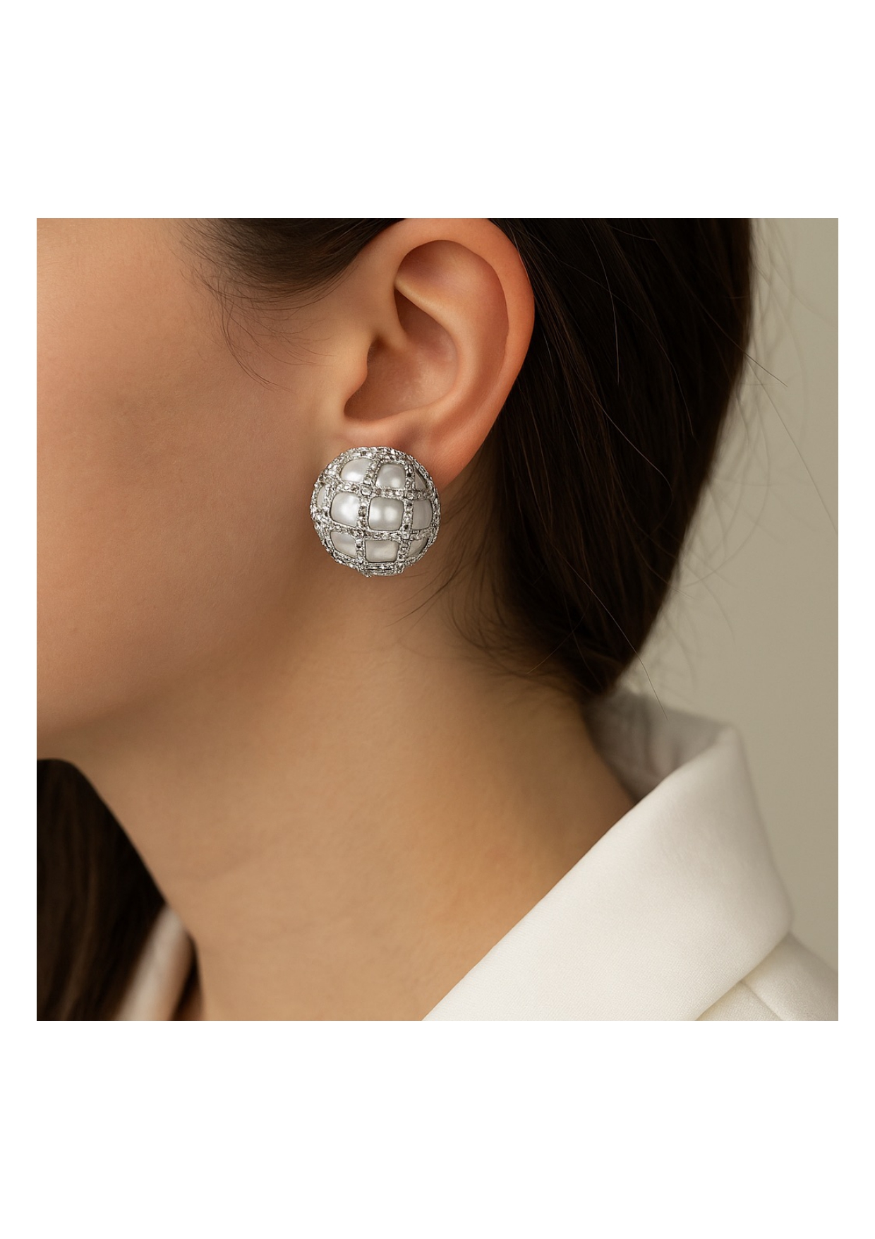 Silver Net Pearl Studs – Subtle Glamour, Timeless Shine