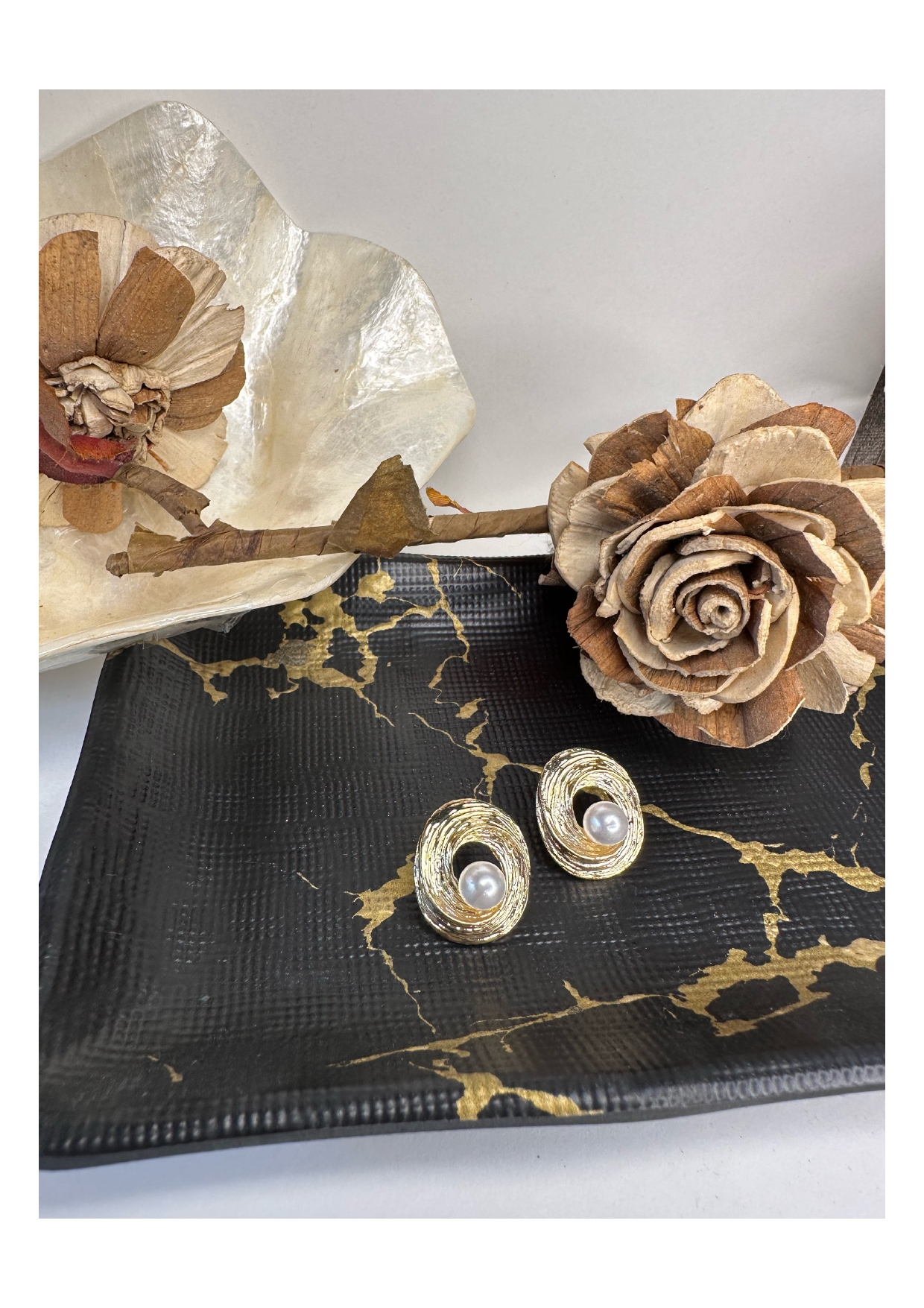 Elegance never goes out of style. These classic studs, featuring a luminous pearl nestled at the center, offer a graceful touch that complements every look — from everyday minimalism to special occasion glam. Coated in radiant 18K gold, they are completely waterproof, skin-safe, and anti-tarnish, ensuring lasting brilliance and comfort.